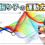 また、数値シミュレーションを用いて運動方程式を解いて、解の挙動を図示してみました。